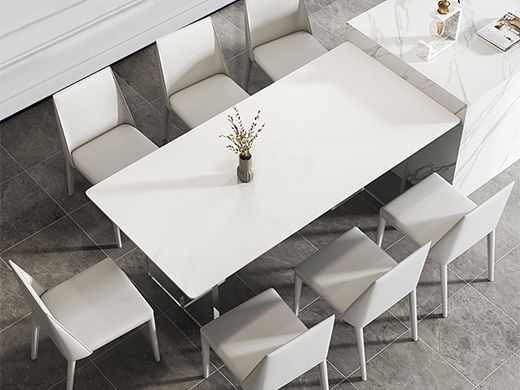 云端 奶油风 碳素钢奶白色 实木多层板底板 12mm岩板面 奶白色 1.8米餐桌¥2304