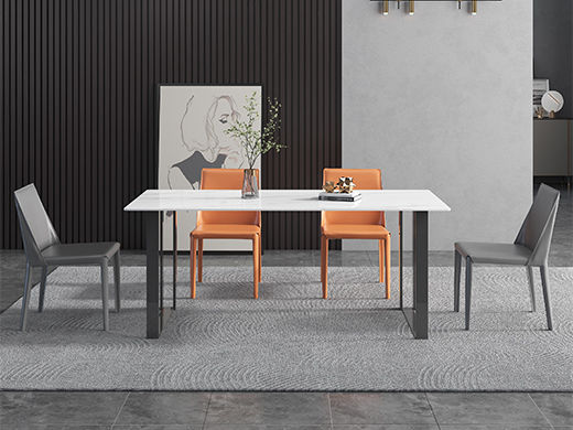 B系优选 现代简约 岩板+碳素钢脚架 1.4米餐桌+4把餐椅(含底板) |