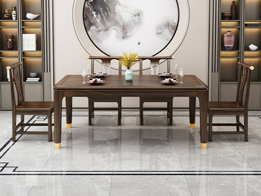 墨槿 新中式 小乌金+实木多层板 乌金色 1.3米西餐桌
