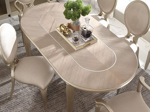 艾美侈 美式 进口榉木+艳阳花木皮 香槟银+古典白 1.6米实木长餐桌
