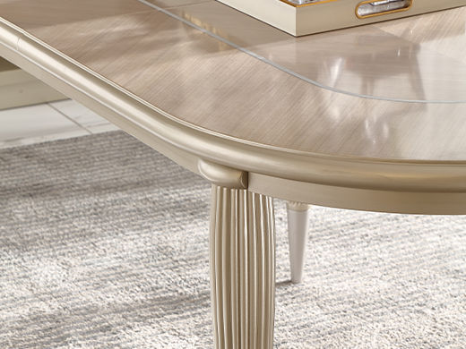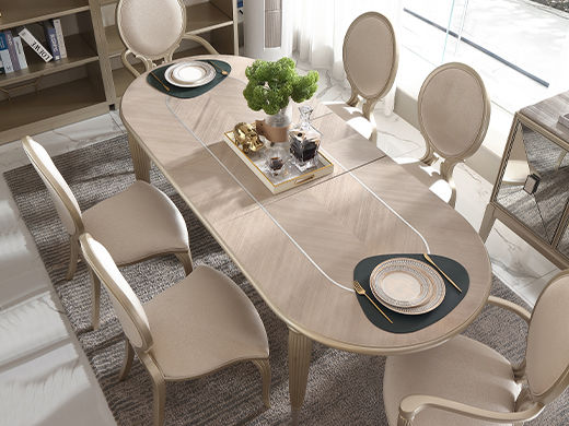 艾美侈 美式 进口榉木+贴AA级尼斯木皮 珍珠银 伸缩 折叠 功能2.2米餐桌