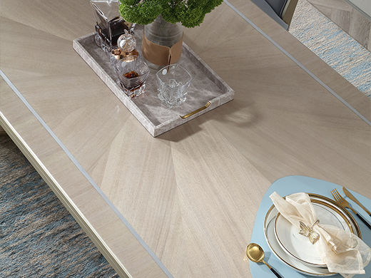艾美侈 美式 进口榉木+贴AA级尼斯木皮 珍珠银 1.6米餐桌¥13293
