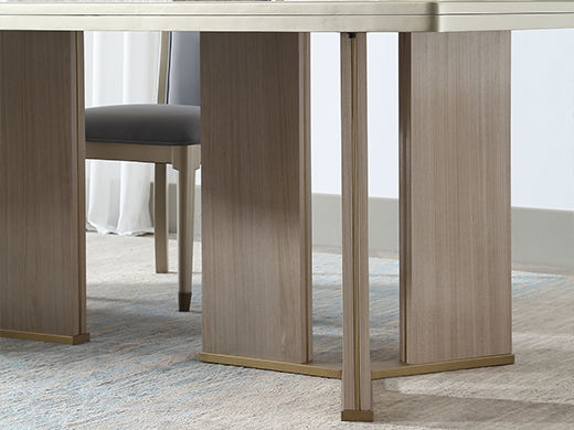 艾美侈 美式 进口榉木+艳阳花木皮 香槟银+古典白 1.6米实木长餐桌