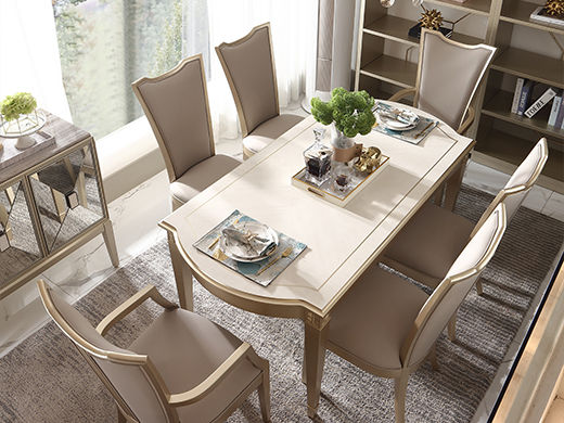 美克金典 美式 欧洲进口榉木+实木多层板 米白描金 1.5米餐桌¥13113