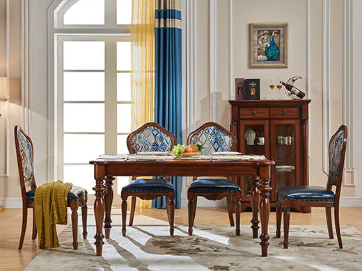 多纳宝 美式 美式 鹅掌楸木+脚柱橡胶木 1.38米实木餐桌
