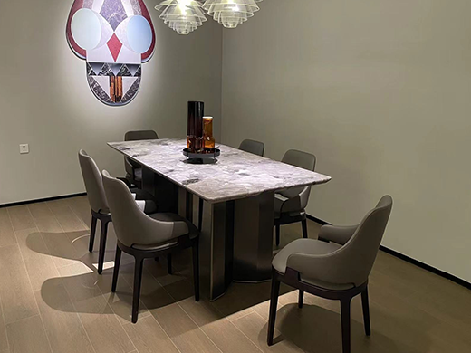 梵纳意简 极简 电镀不锈钢+贴纸大理石+实木多层板 2米餐桌¥14466