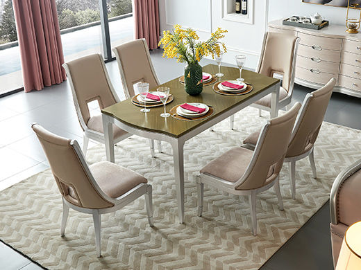 美克金典 美式 欧洲进口榉木+实木多层板 香槟银 1.6米长餐桌