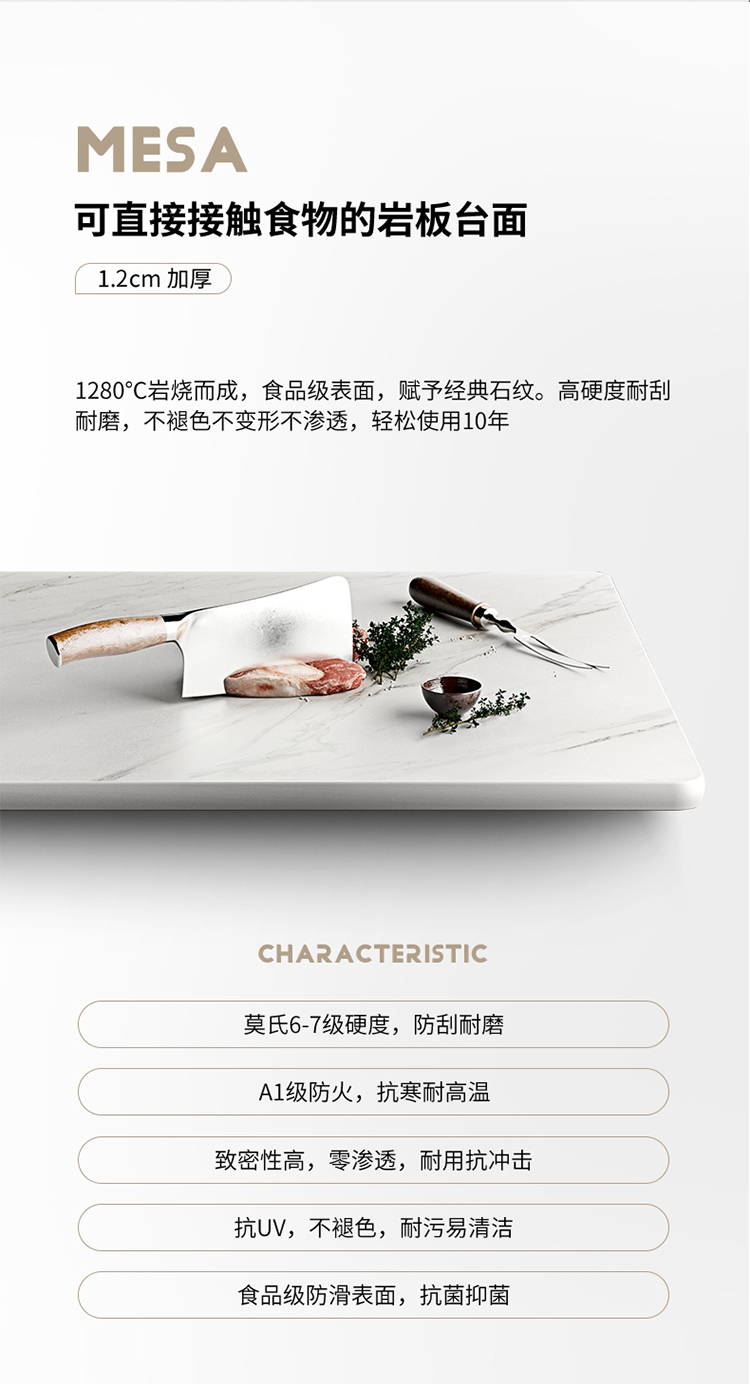 A系优选 现代简约 岩板+碳素钢 羊脂白玉 1.4米长餐桌 (含底板)¥3402
