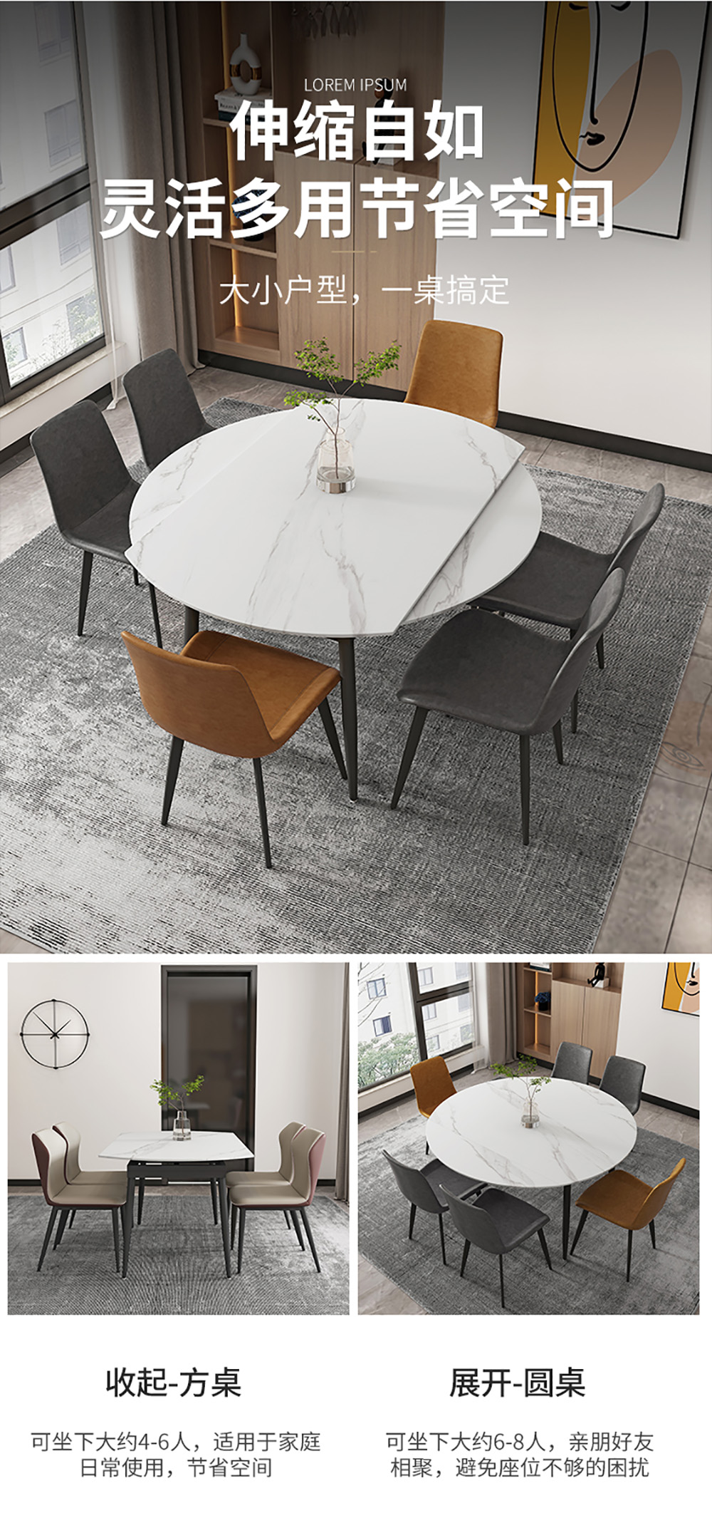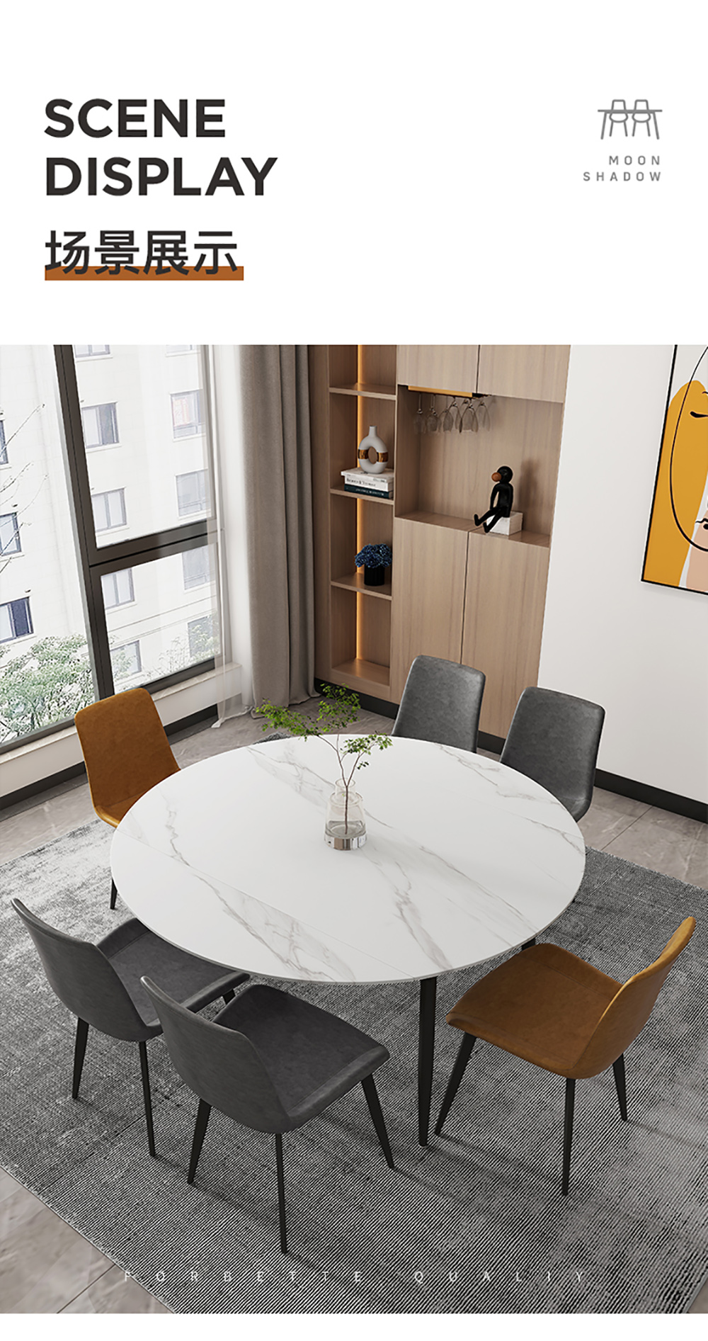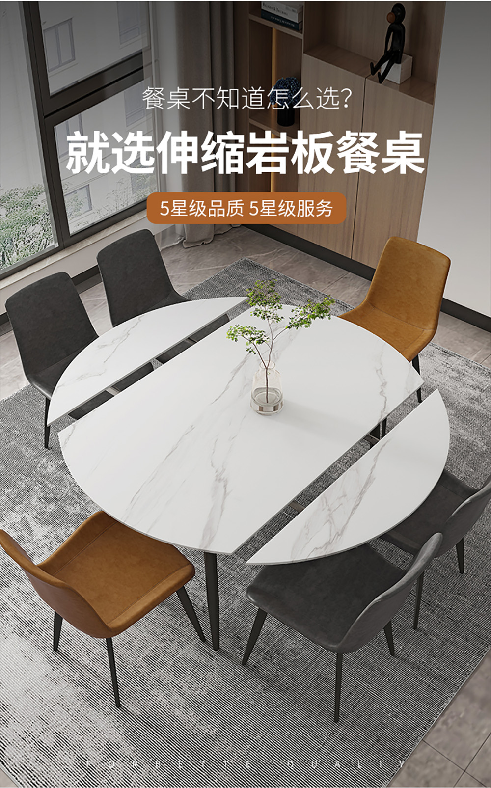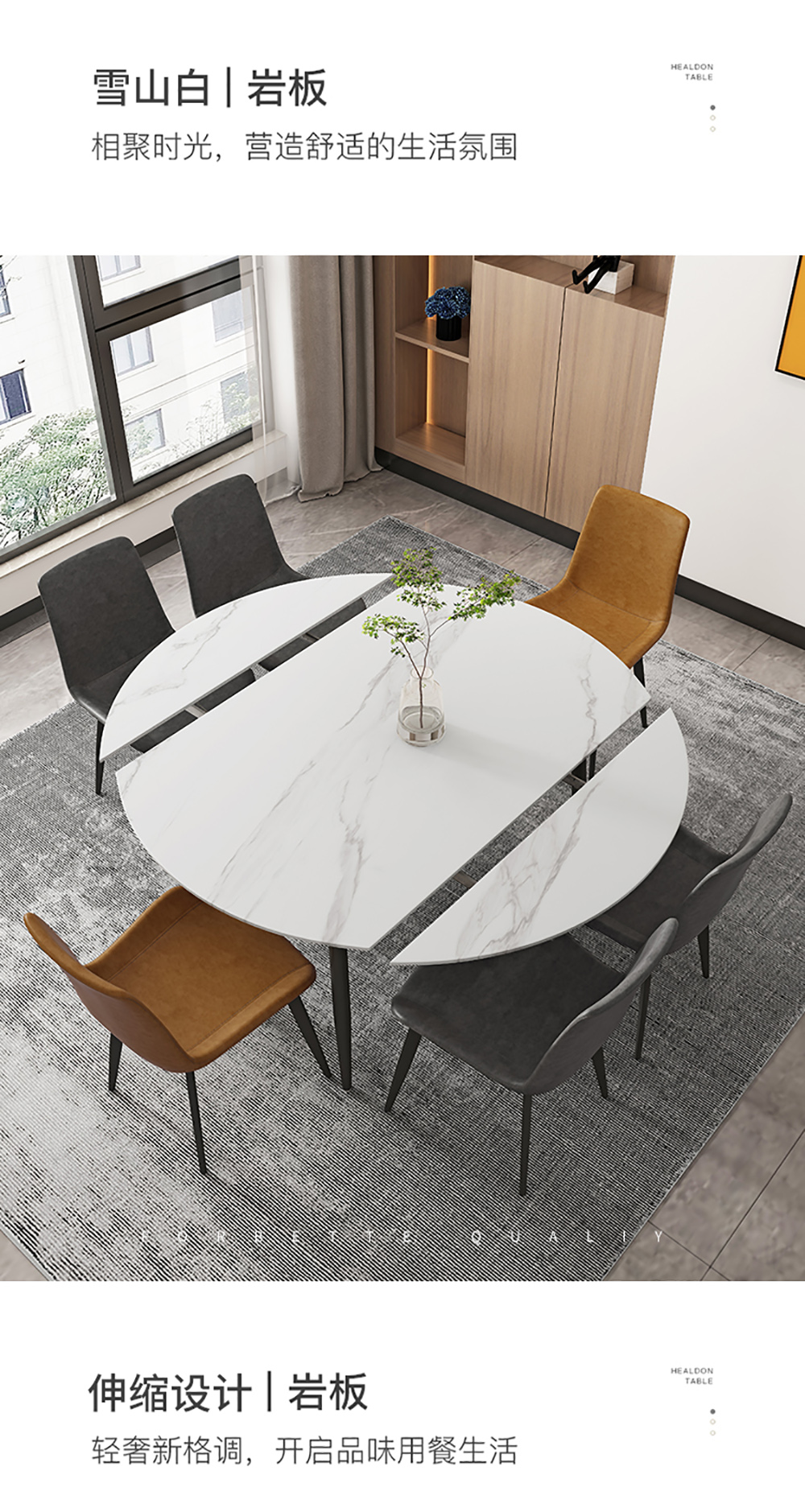 A系优选 现代简约 碳素钢底架+亮光/哑光 岩板 1.3米 功能 拉伸餐桌 (不含底板)