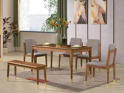 乐芙兰 北欧 进口白蜡木+多层实木板+电镀五金 胡桃色 1.4米餐桌