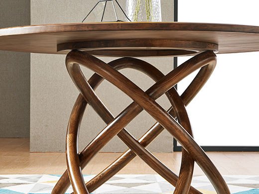 乐芙兰 北欧 进口白蜡木+多层实木板 胡桃色 1.3米圆餐台