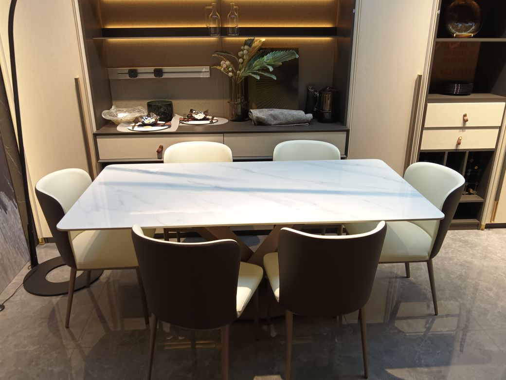 拉斐尔 轻奢 岩板+电镀不锈钢五金 1.8米餐桌¥7220