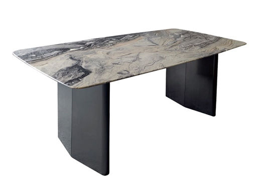 梵纳意简 极简 电镀不锈钢+贴纸大理石+实木多层板 1.4米餐桌