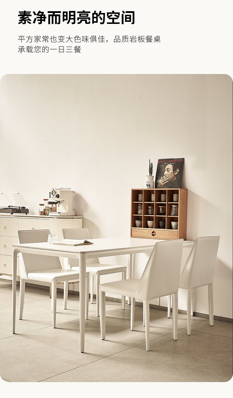 云端 奶油风 碳素钢奶白色 实木多层板底板 12mm岩板面 奶白色 1.8米餐桌¥2304