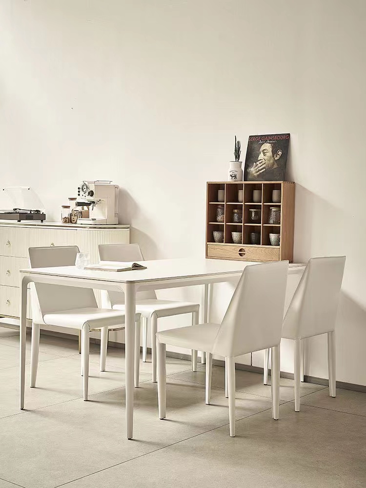 B系优选 奶油风 碳素钢底架+亮光/哑光 岩板面 1.4米餐桌+4把餐椅(含底板)¥1842