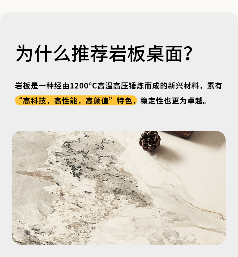 柏思戈 奶油风 岩板+EE级环保密度板 1.4米餐桌¥2386