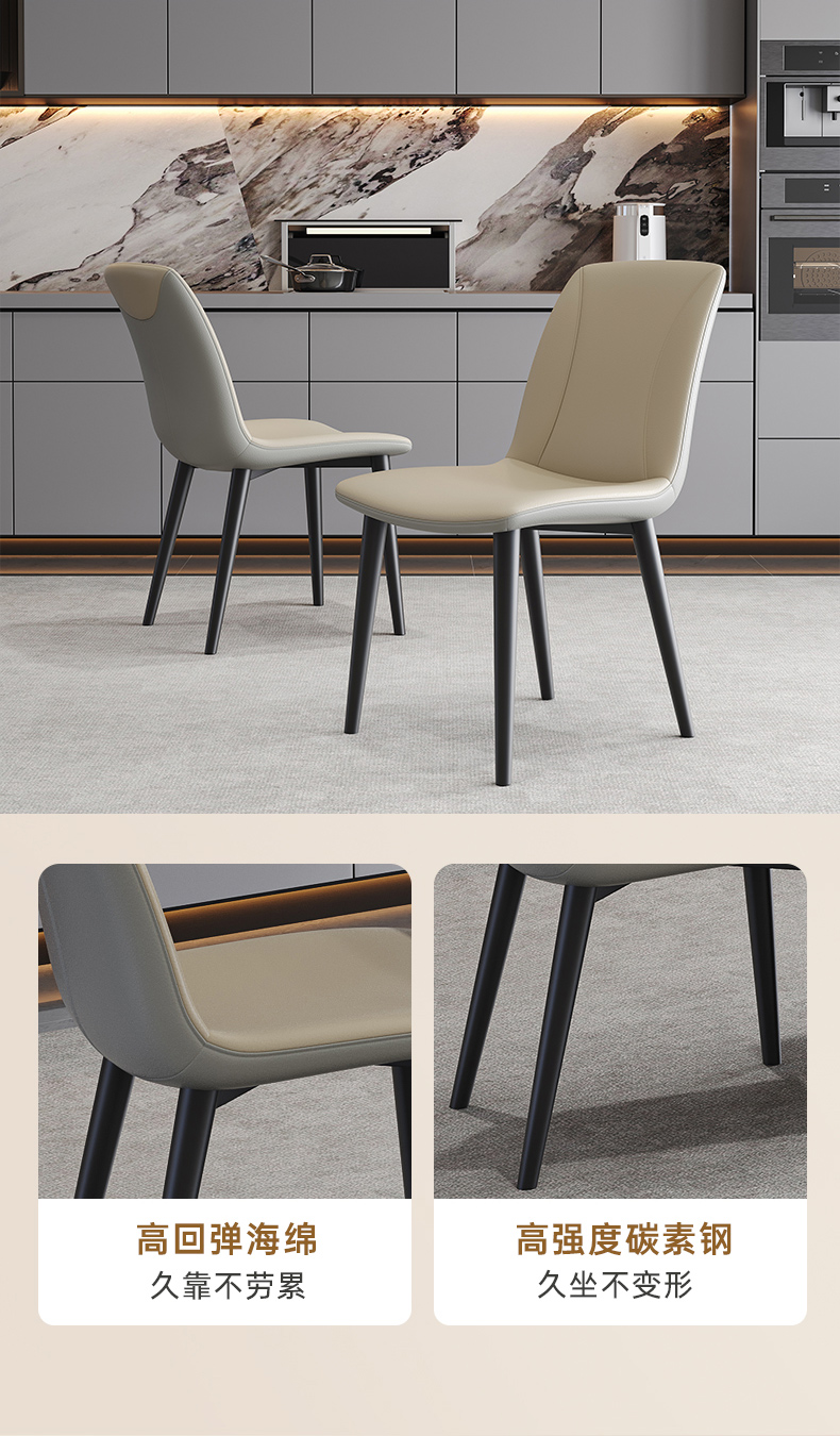梵歌 现代简约 11MM(3厘岩板+8厘玻璃)复合岩板面 碳素钢五金脚 金属土灰+浅卡其 1.6米方餐桌