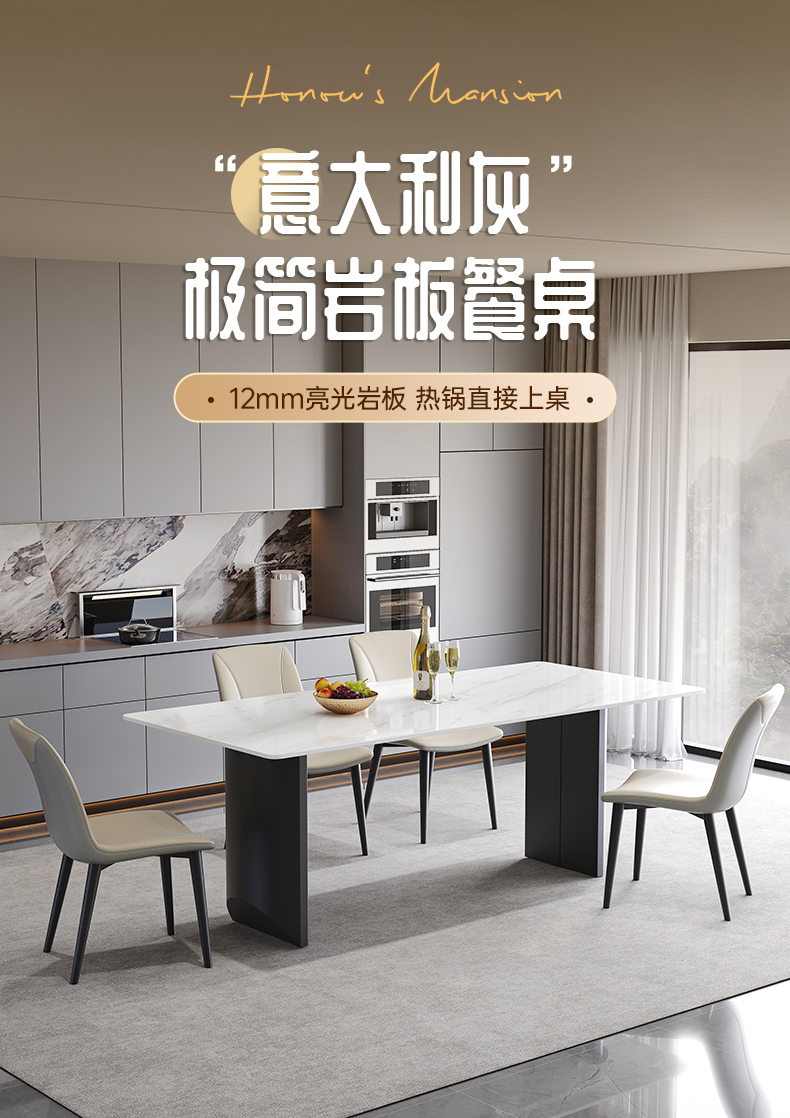 A家家居 现代简约 12mm香奈儿亮光岩板 碳素钢底架 香奈儿 1.4米长餐桌¥1352