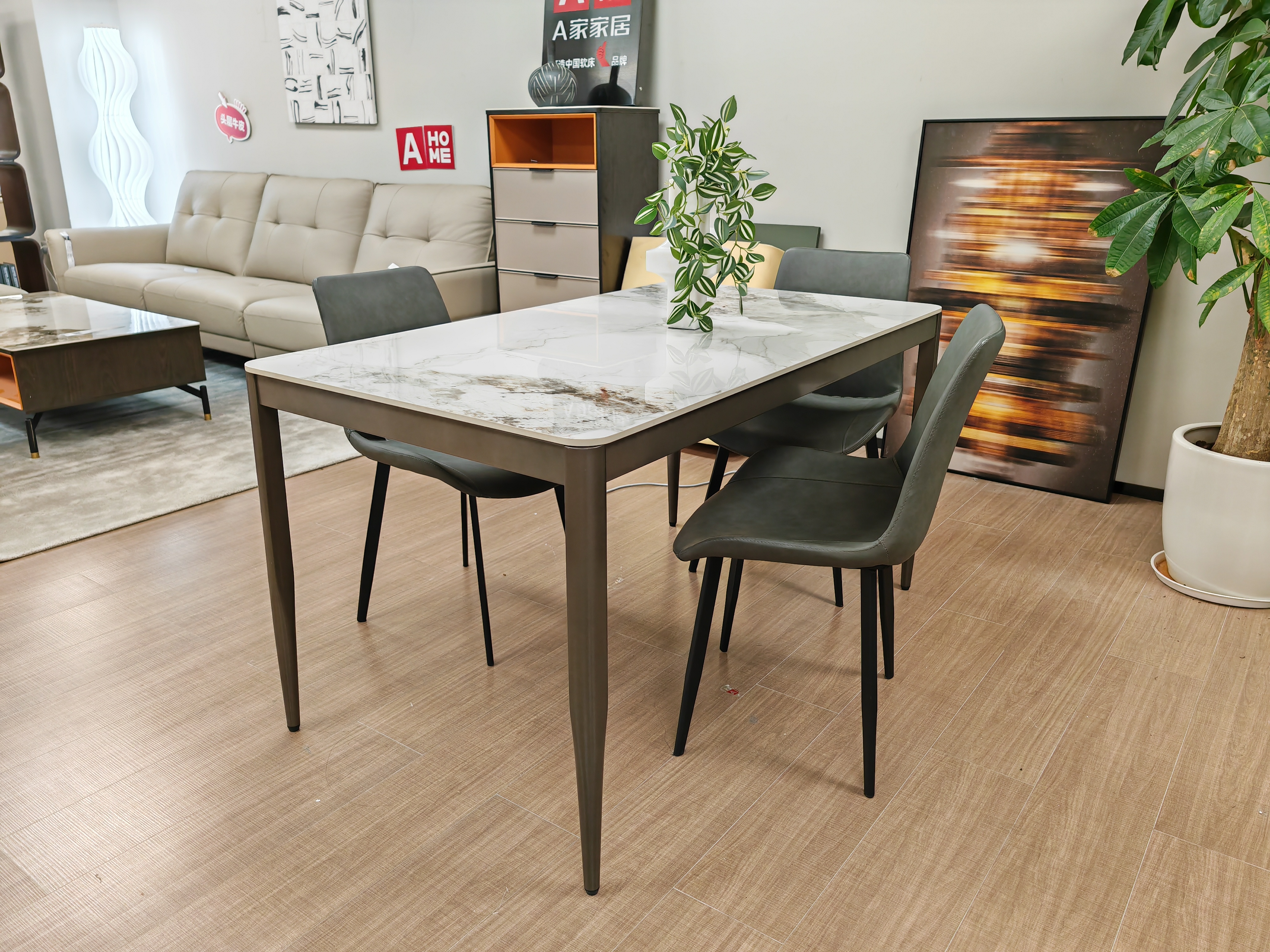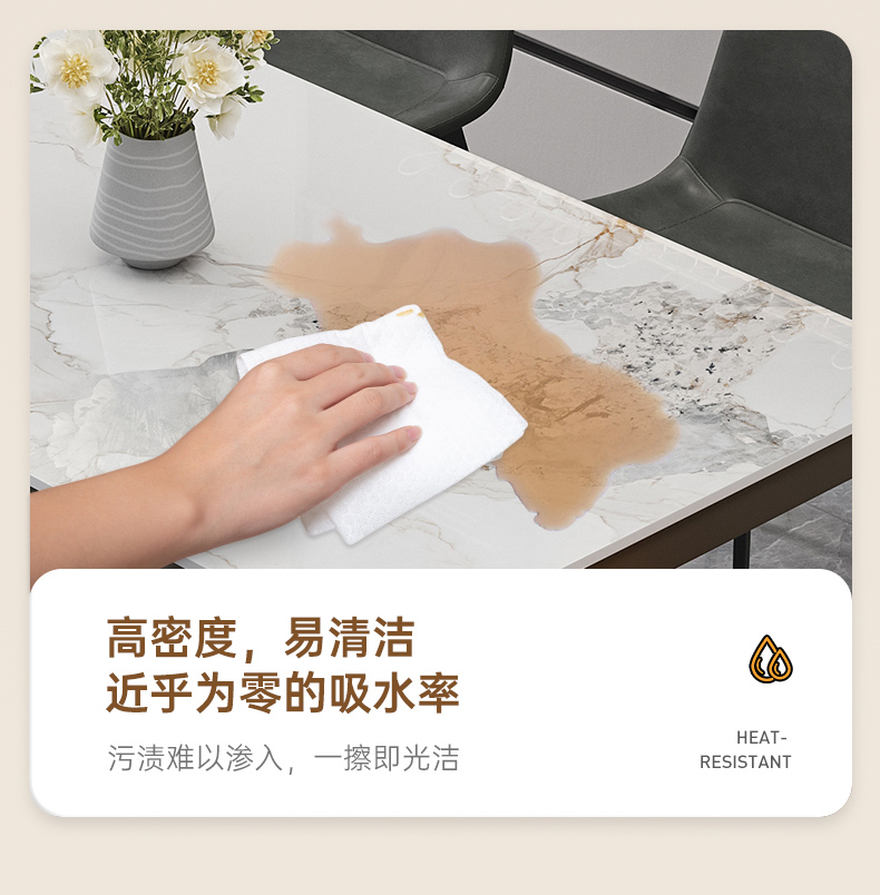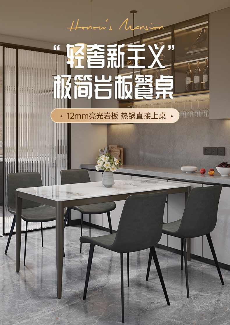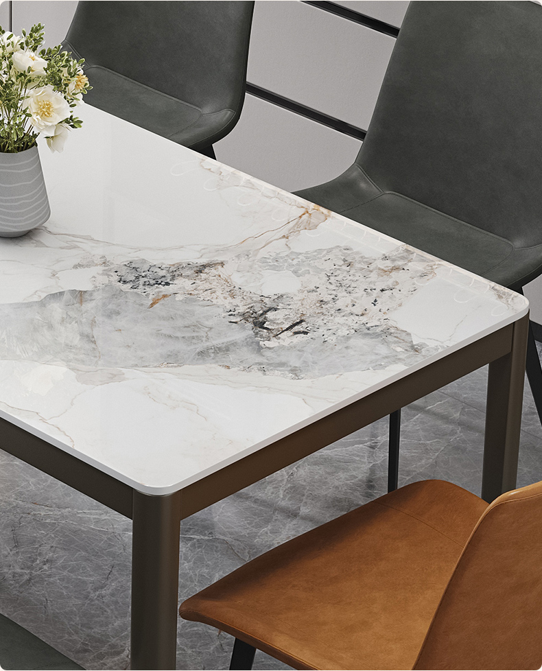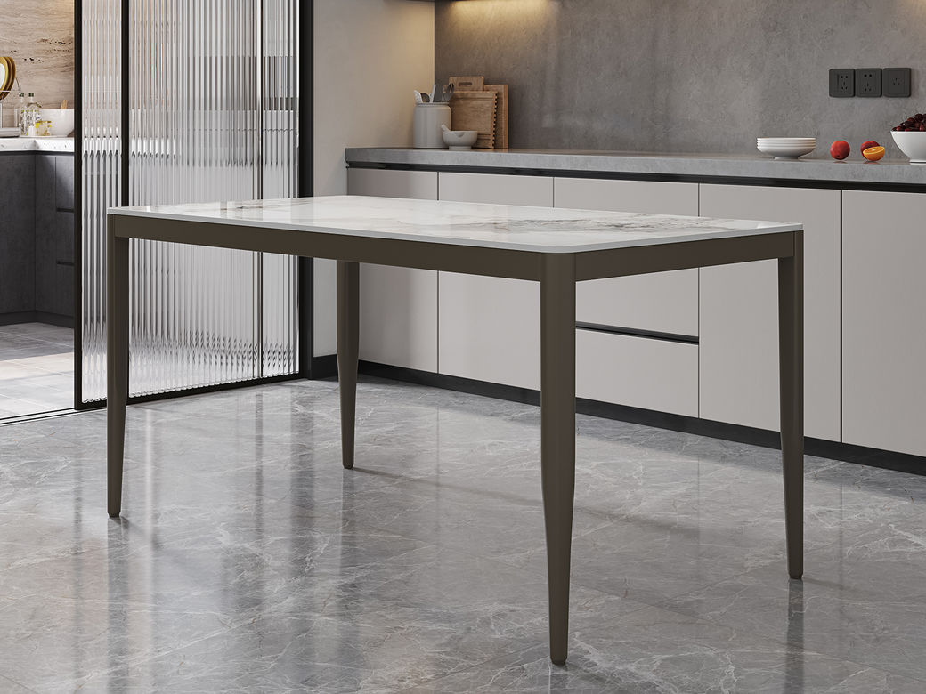 A家家居 现代简约 12mm香奈儿亮光岩板 碳素钢底架 香奈儿 1.4米长餐桌