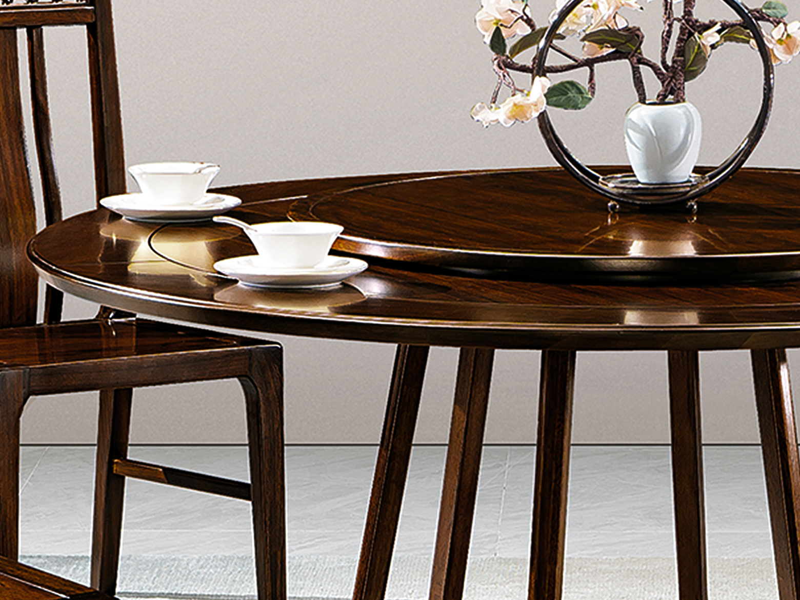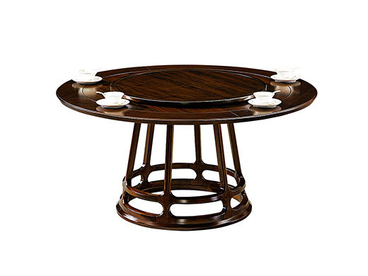 宝瑞·檀风 新中式 印尼金花梨木框架+多层实木板贴皮+转盘+玻璃 紫檀色 1.4米餐桌 餐桌¥4420