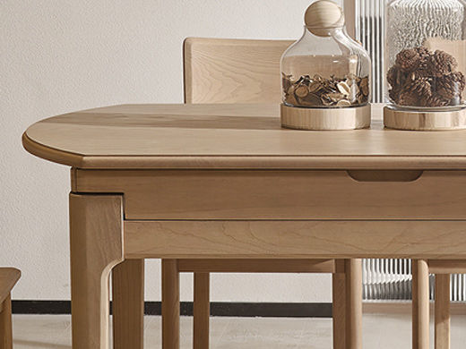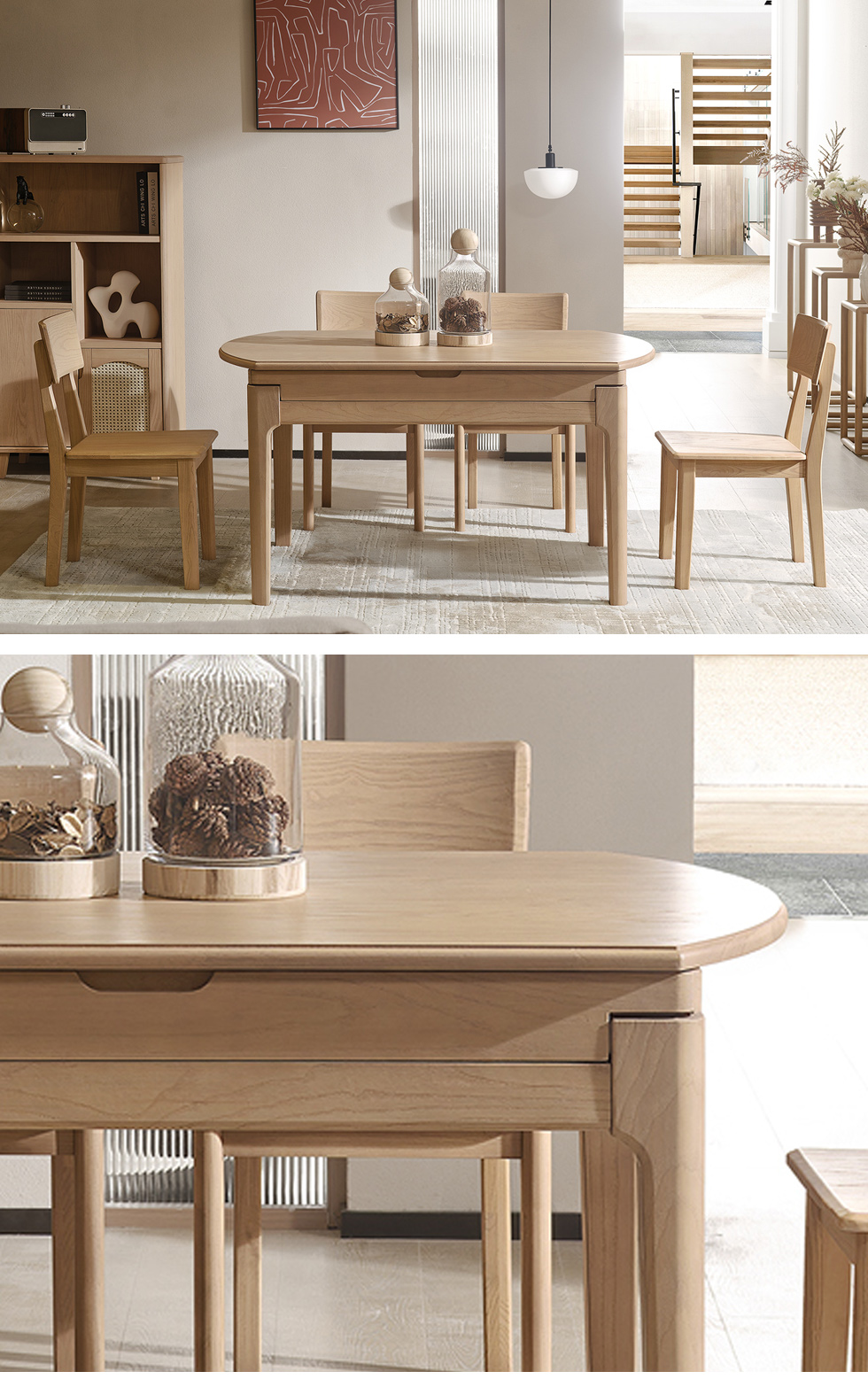 洛尔 中古风 现代实木 进口原木+橡胶木+贴皮 麦卡色 跳台 功能1.35米餐桌