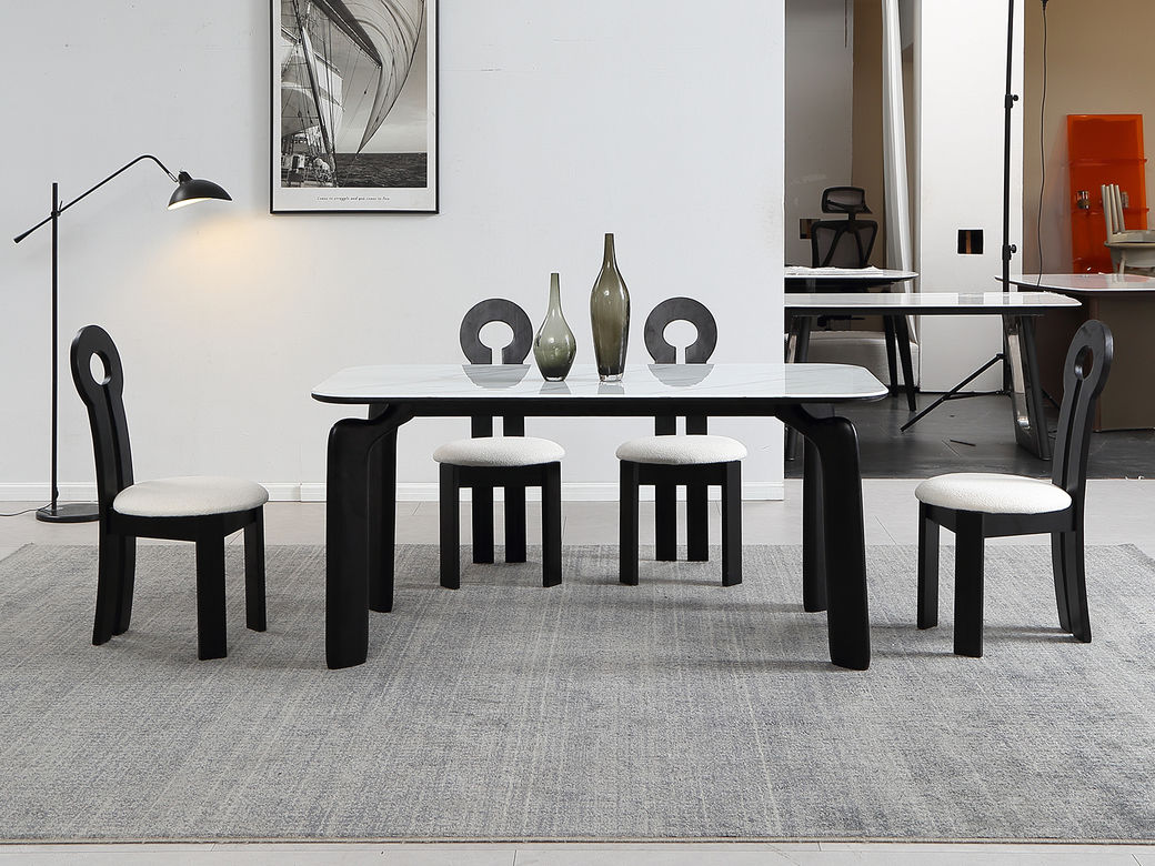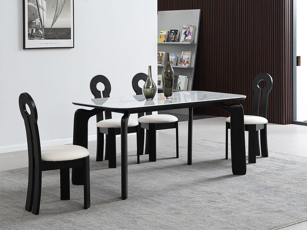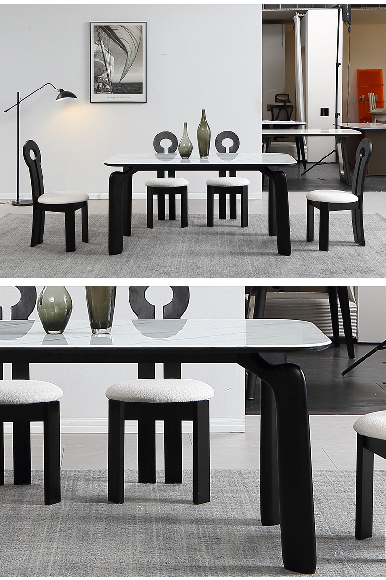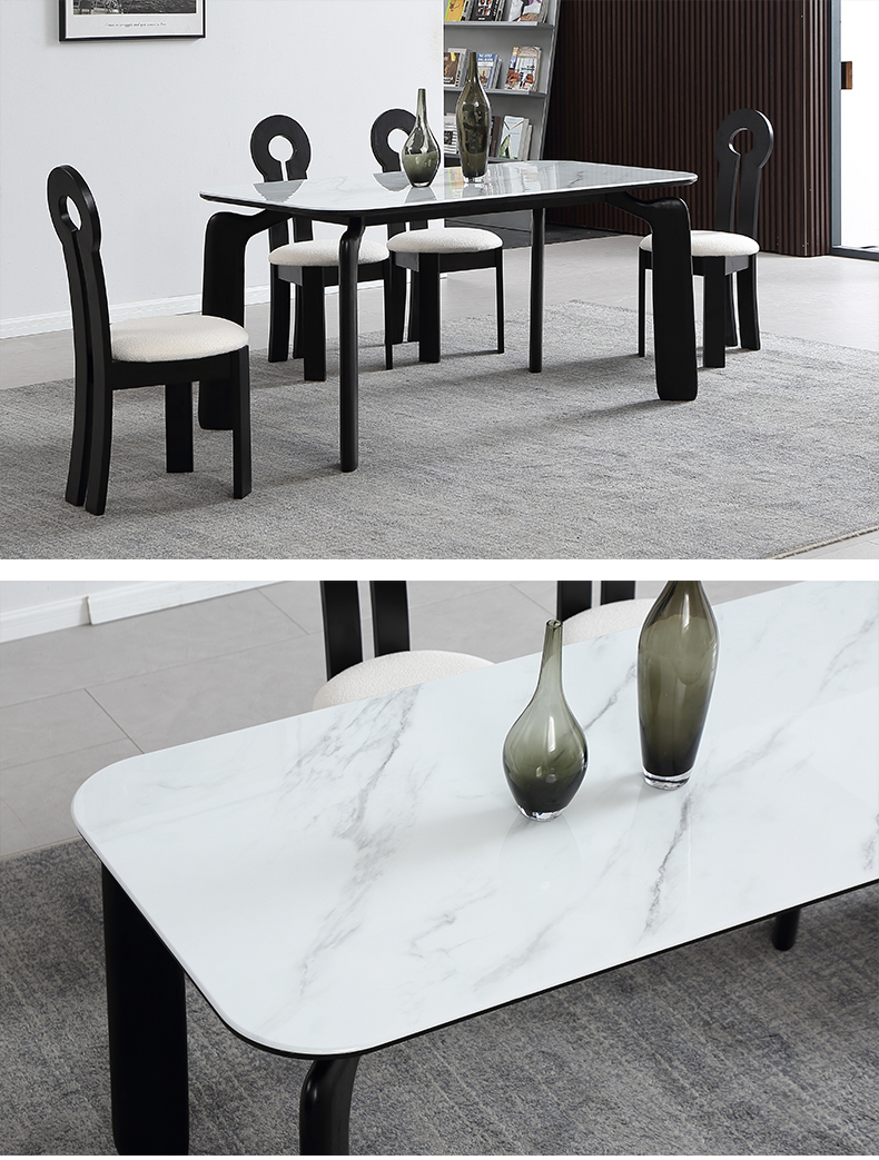 B系优选 现代简约 黑色碳素钢+实木多层板底板+亮光岩板 1.4米餐桌+4把餐椅(含底板)¥3402