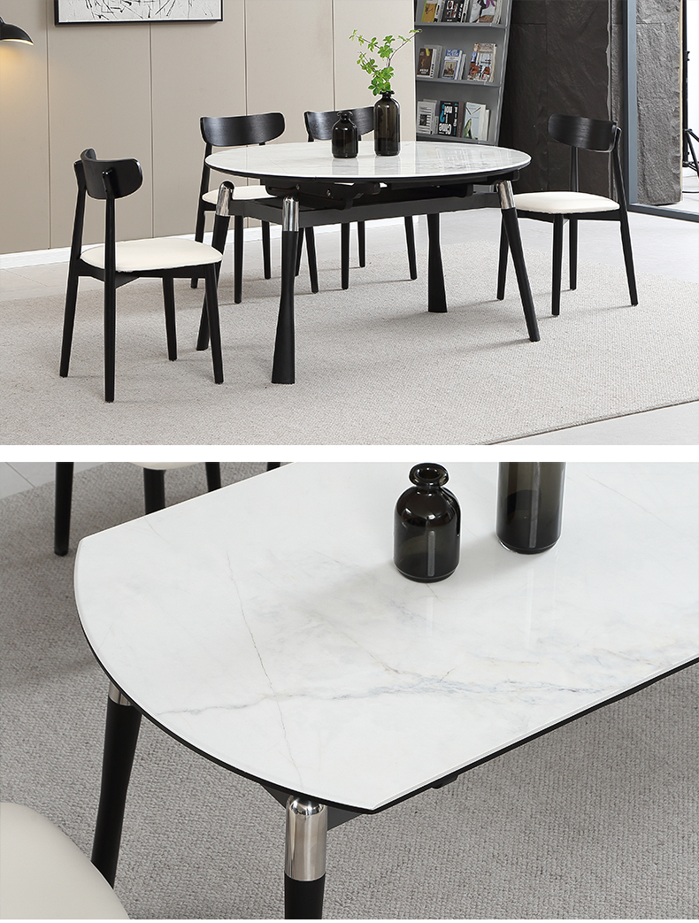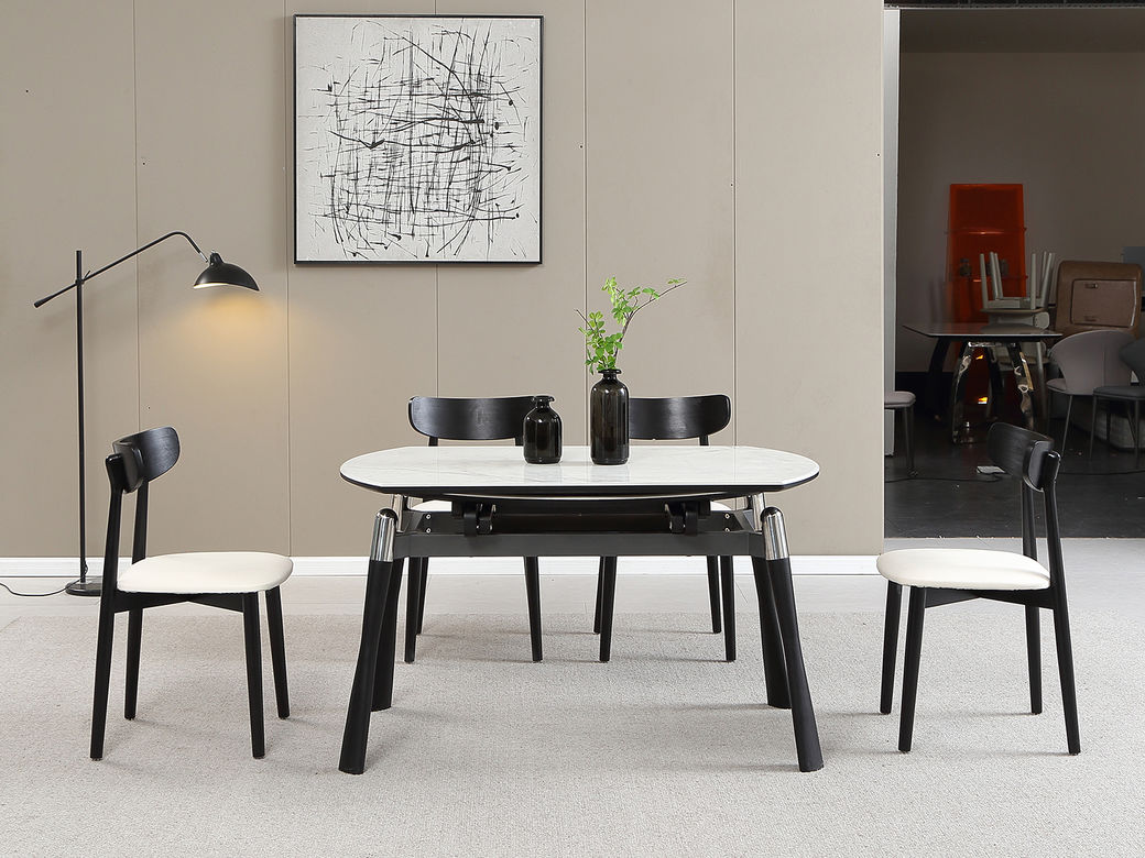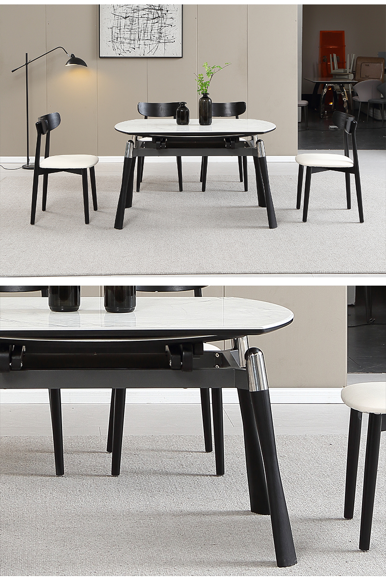 B系优选 现代简约 黑色碳素钢+实木多层板底板+亮光岩板 1.4米餐桌+4把餐椅(含底板)¥3402
