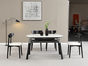A系优选 现代简约 餐桌:岩板+碳素钢脚架 餐椅:碳素钢脚架+PU皮 1.4米餐桌+4把餐椅 (含底板)¥4008
