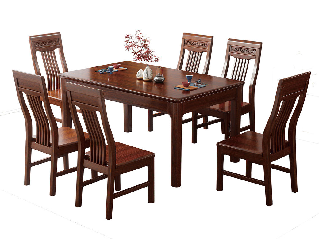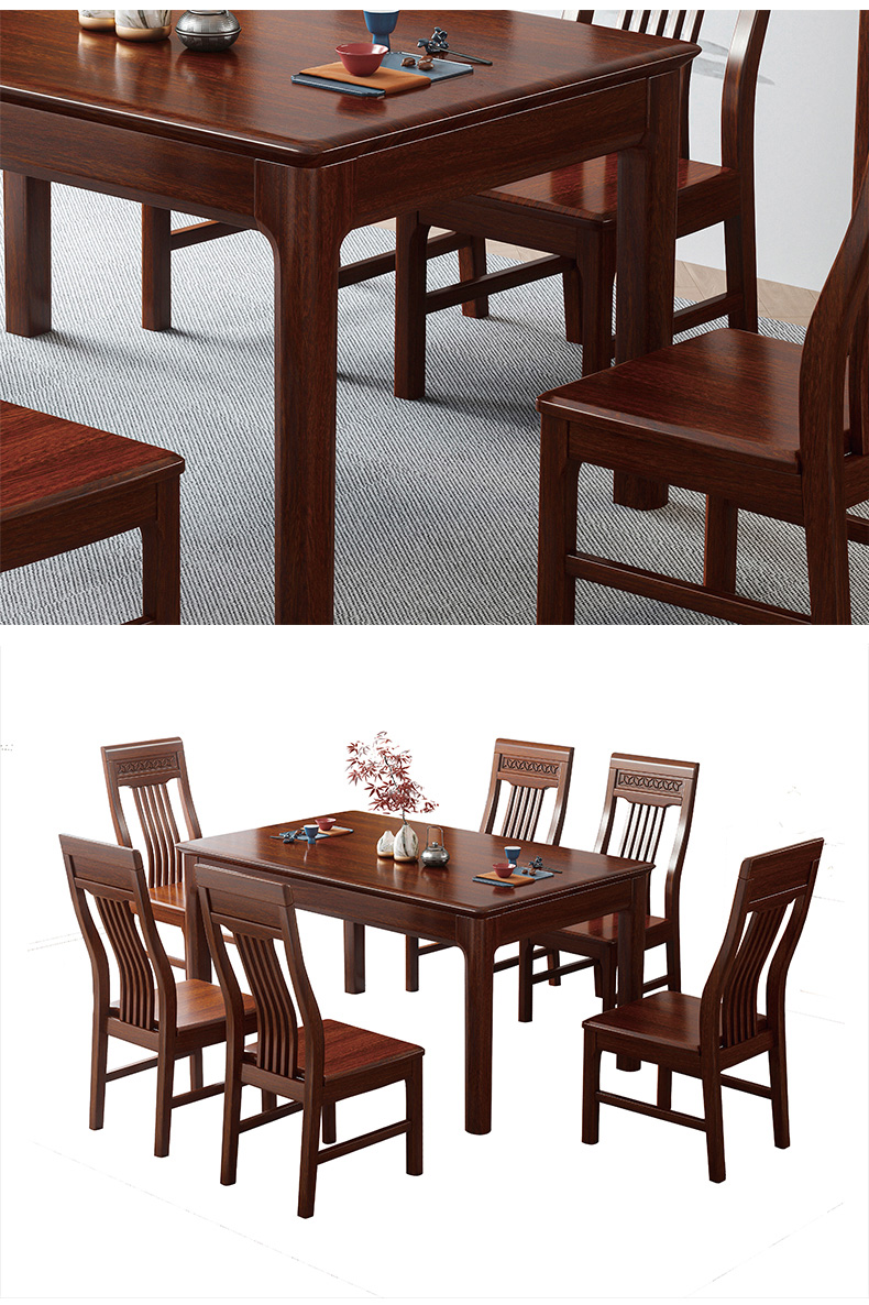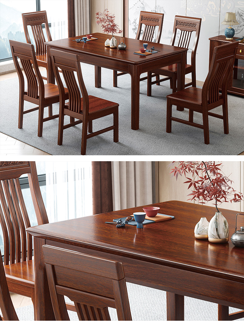 美檀家居 新中式 进口黑檀木+多层实木板 黑檀色 1.58米餐桌¥5009