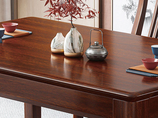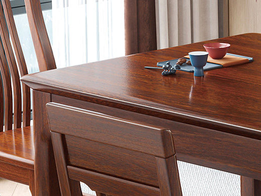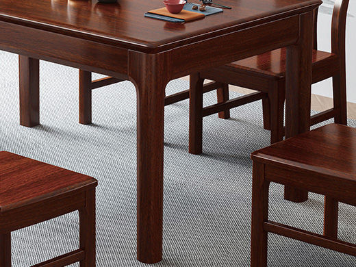 宝瑞·檀风 新中式 印尼金花梨木框架+多层实木板贴皮 紫檀色 1.35米餐桌 |