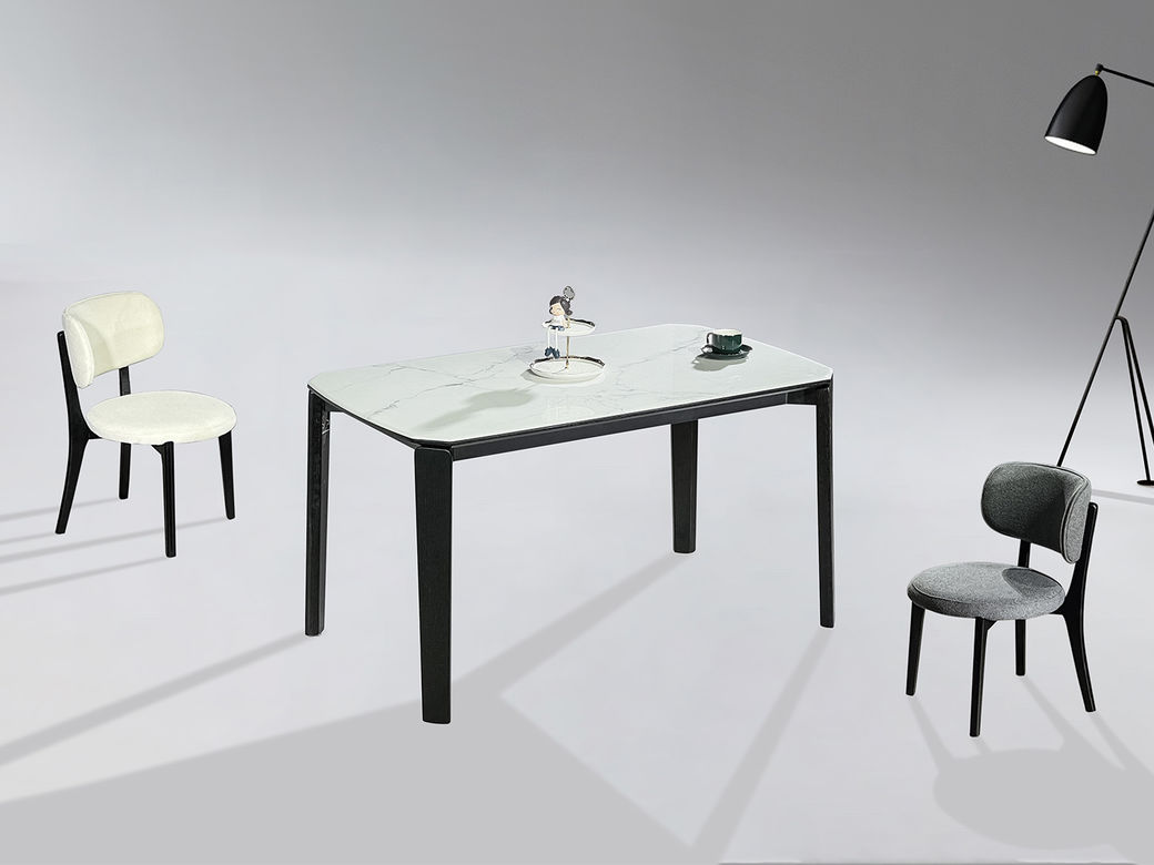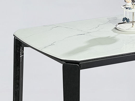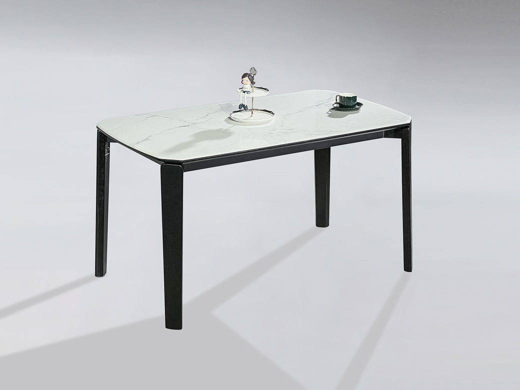 甄品家具 极简 桌面:自然白彩晶石 脚架:橡木黑色 1.4米拉伸 功能餐桌¥2872