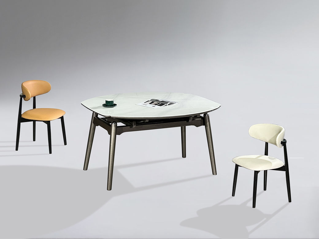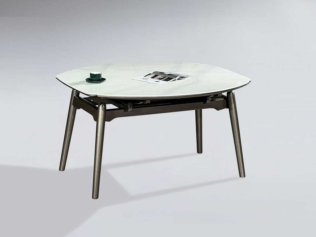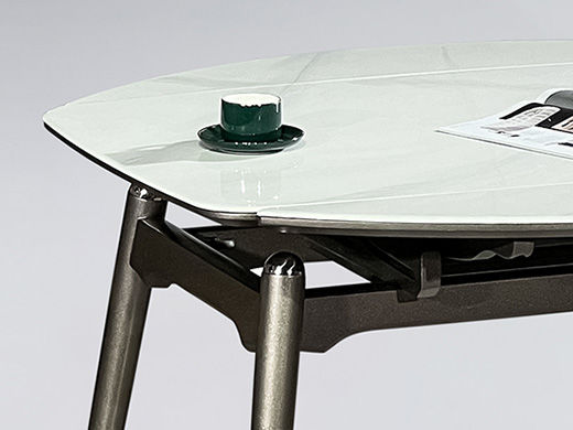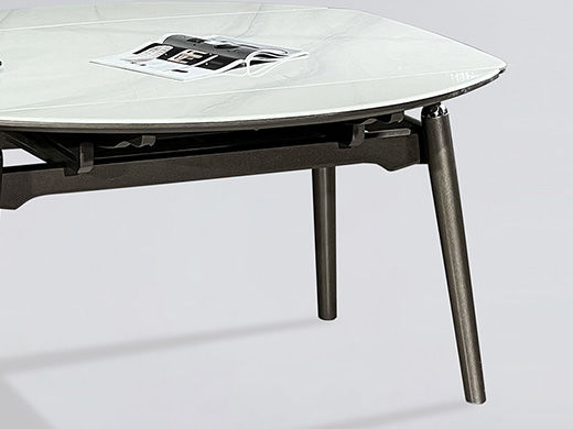 甄品家具 极简 桌面:东方白彩晶石脚架:橡木(枪灰色带金粉) 1.4米拉伸 功能餐桌