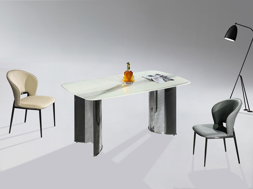 甄品家具 极简 桌面:岩板+底板脚架:不锈钢灰钛 1.6米餐桌¥14111