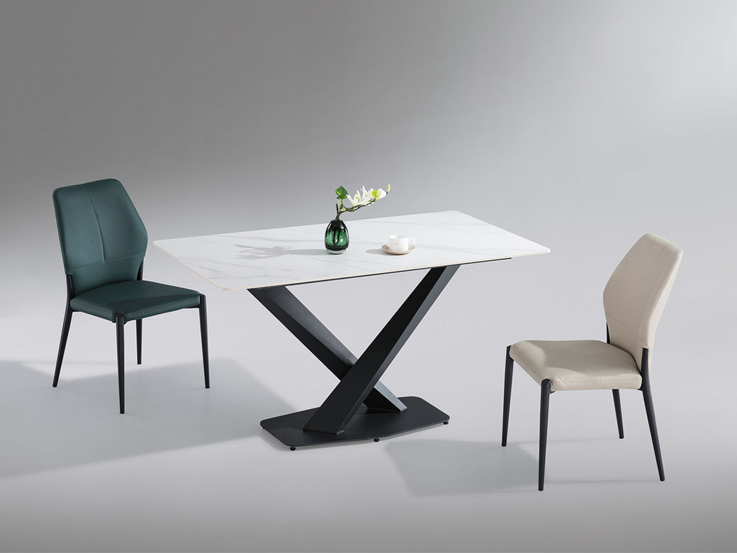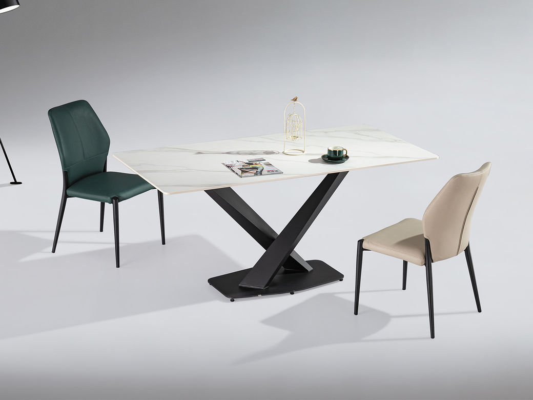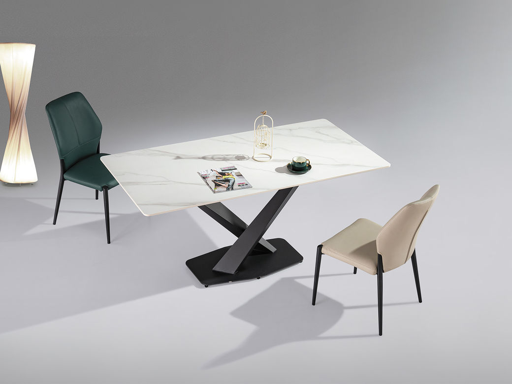 甄品家具 极简 桌面:岩板+底板脚架:墨兰紫碳素钢+岩板 1.4米餐桌¥1219