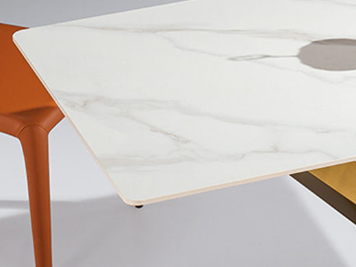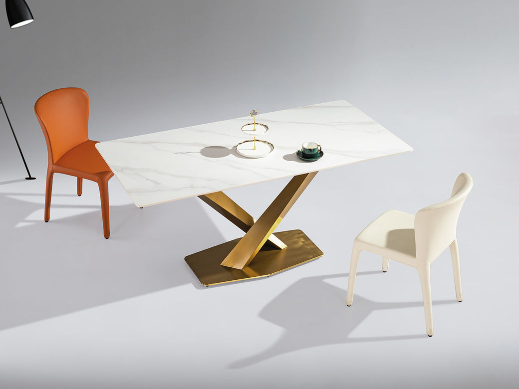 甄品家具 轻奢 桌面:岩板+底板脚架:不锈钢钛金 1.4米餐桌