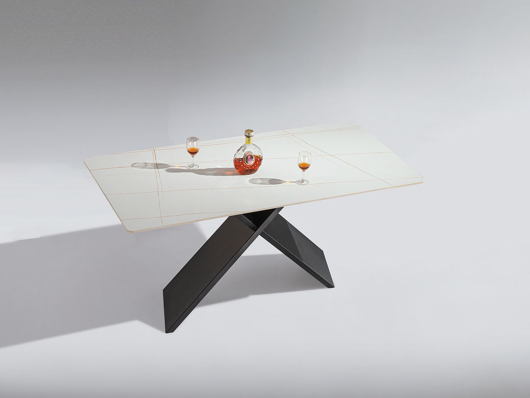 甄品家具 极简 桌面:岩板+底板脚架:不锈钢黑钛+钛金 1.4米餐桌¥2465