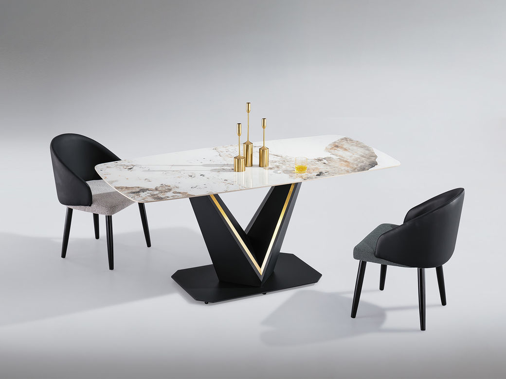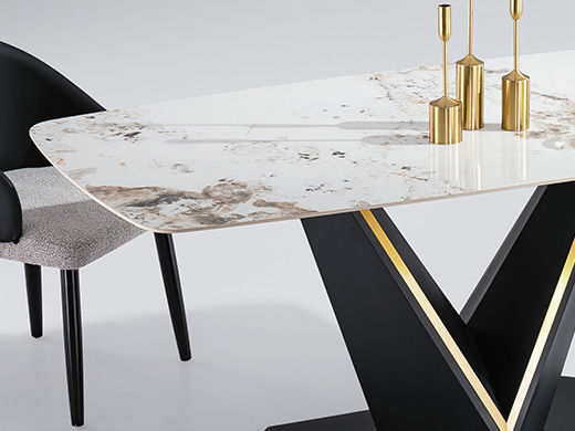 甄品家具 极简 桌面:岩板+底板脚架:不锈钢黑钛+钛金 1.4米餐桌¥2465