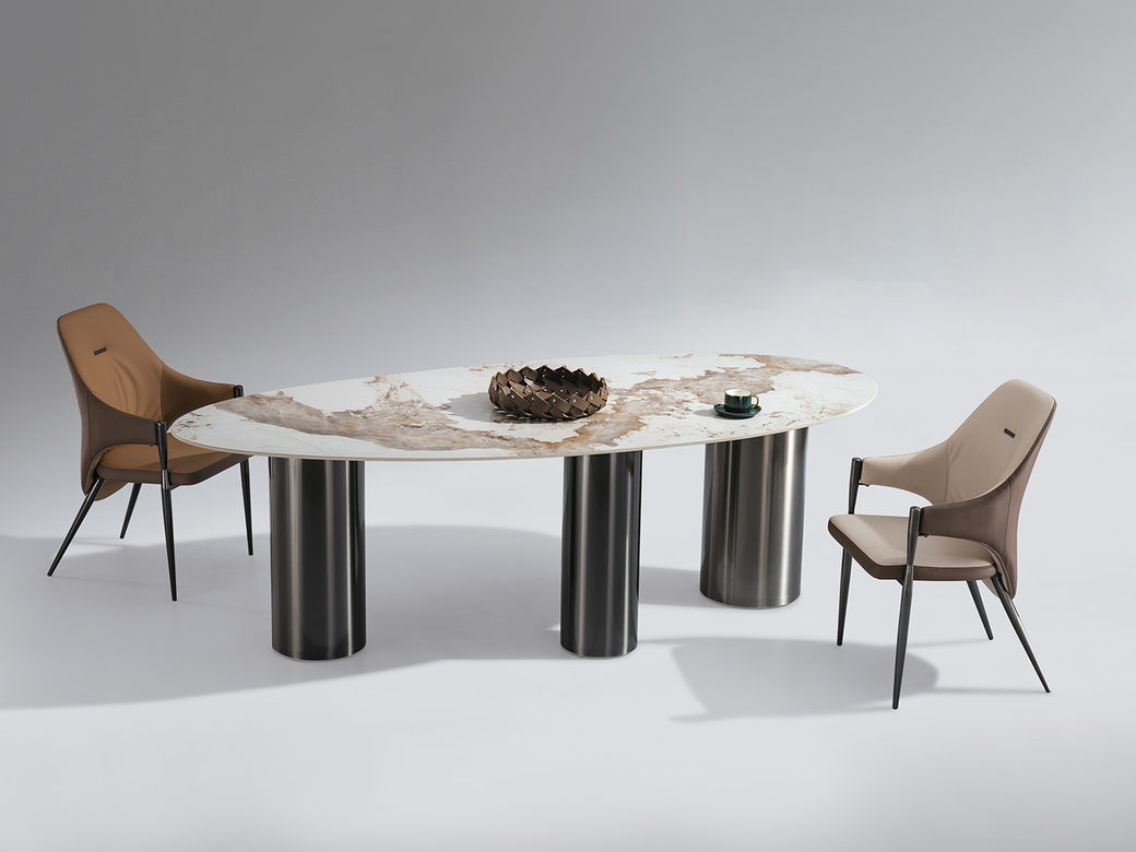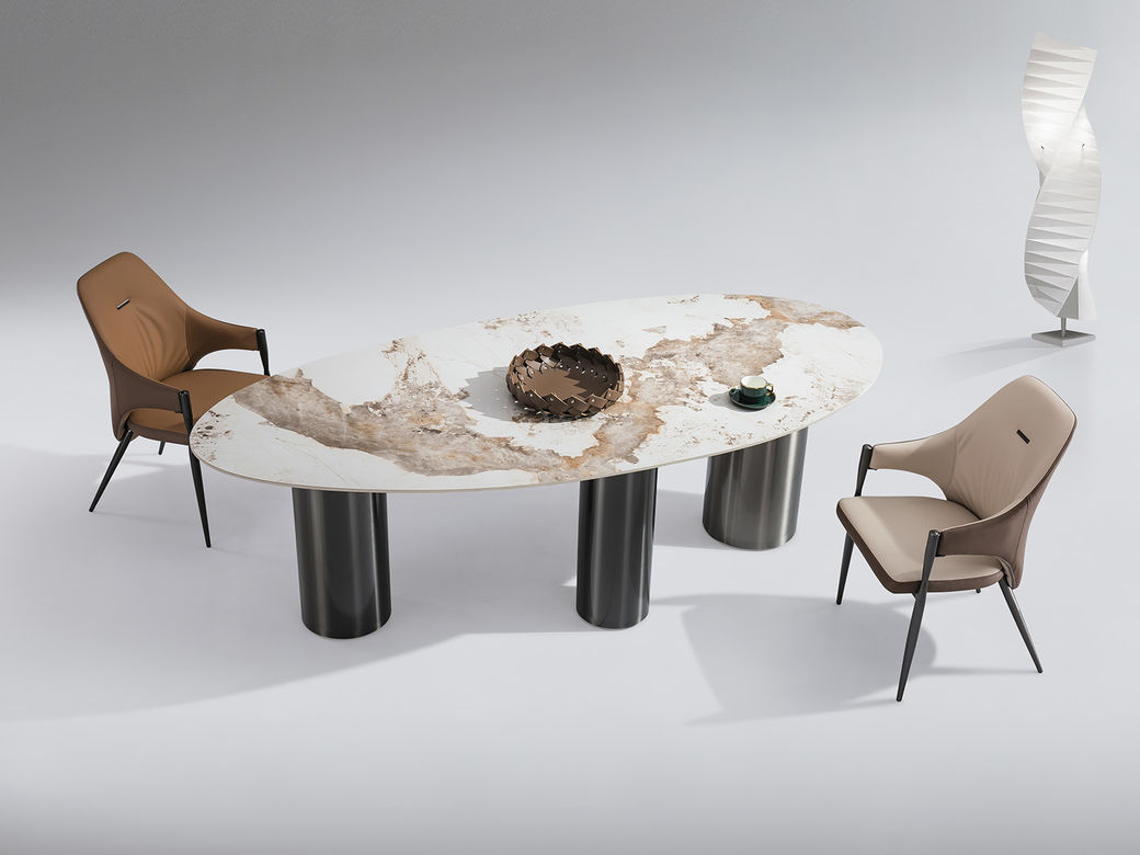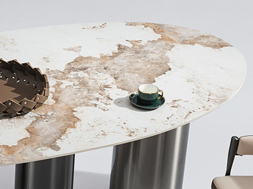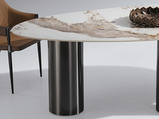 甄品家具 轻奢 桌面:岩板+底板脚架:不锈钢黑钛注:(此价格为蛋型亮光单价) 1.6米餐桌