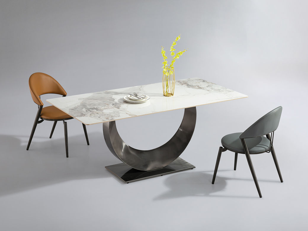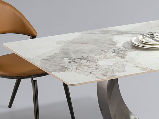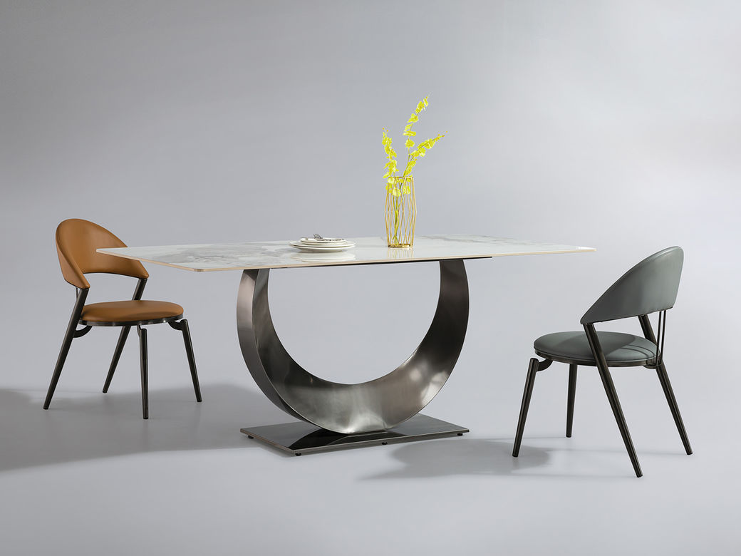 小红书系列 极简 进口复合岩板+TY07不锈钢底座 1.4米 长餐桌