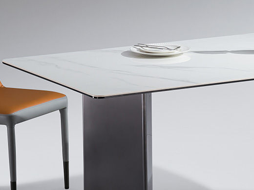 甄品家具 极简 桌面:岩板+底板脚架:墨兰紫碳素钢+岩板 1.4米餐桌¥1219