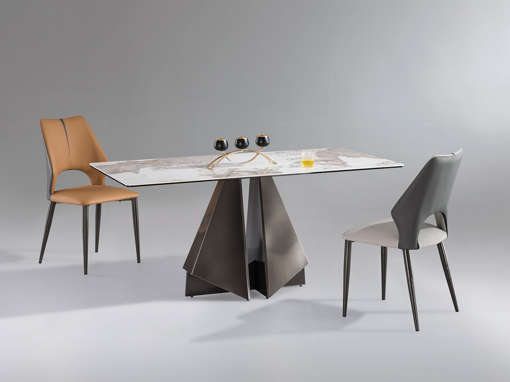 小红书系列 极简 进口复合岩板+TY07不锈钢底座 1.4米 长餐桌