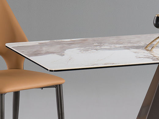 小红书系列 极简 桌面:岩板+底板脚架:珠光棕碳素钢 1.4米餐桌