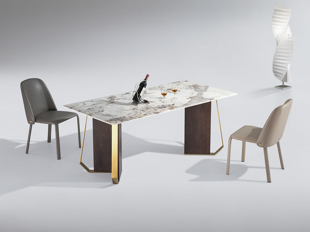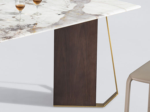 小红书系列 极简 桌面:岩板+底板脚架:不锈钢钛金+密度板贴皮 1.4米餐桌
