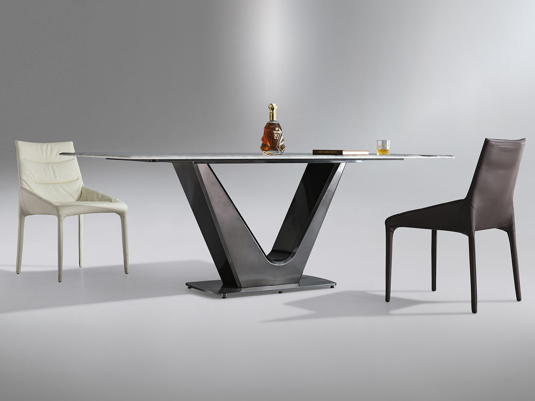 甄品家具 轻奢 桌面:天然石+常规底板脚架:不锈钢灰钛 1.4米餐桌
