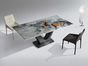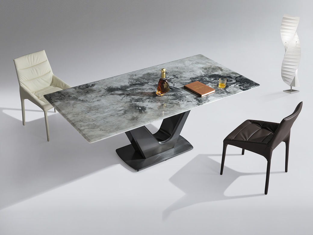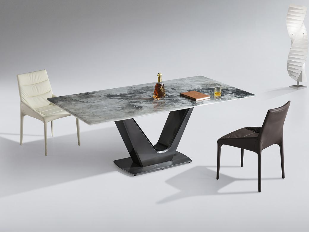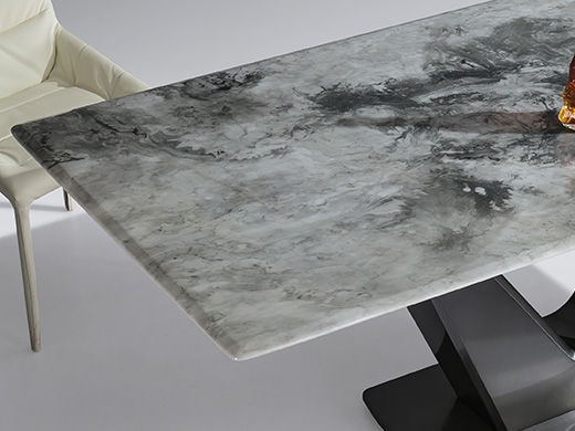 甄品家具 轻奢 桌面:水墨烟华彩晶石+底板脚架:不锈钢黑钛 1.4米餐桌