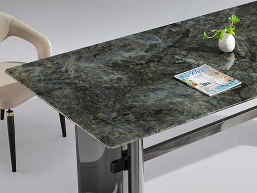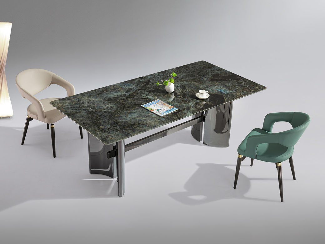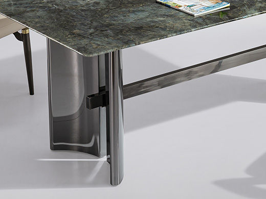 小红书系列 轻奢 桌面:岩板+底板 脚架:不锈钢黑钛亮面 1.4米餐桌
