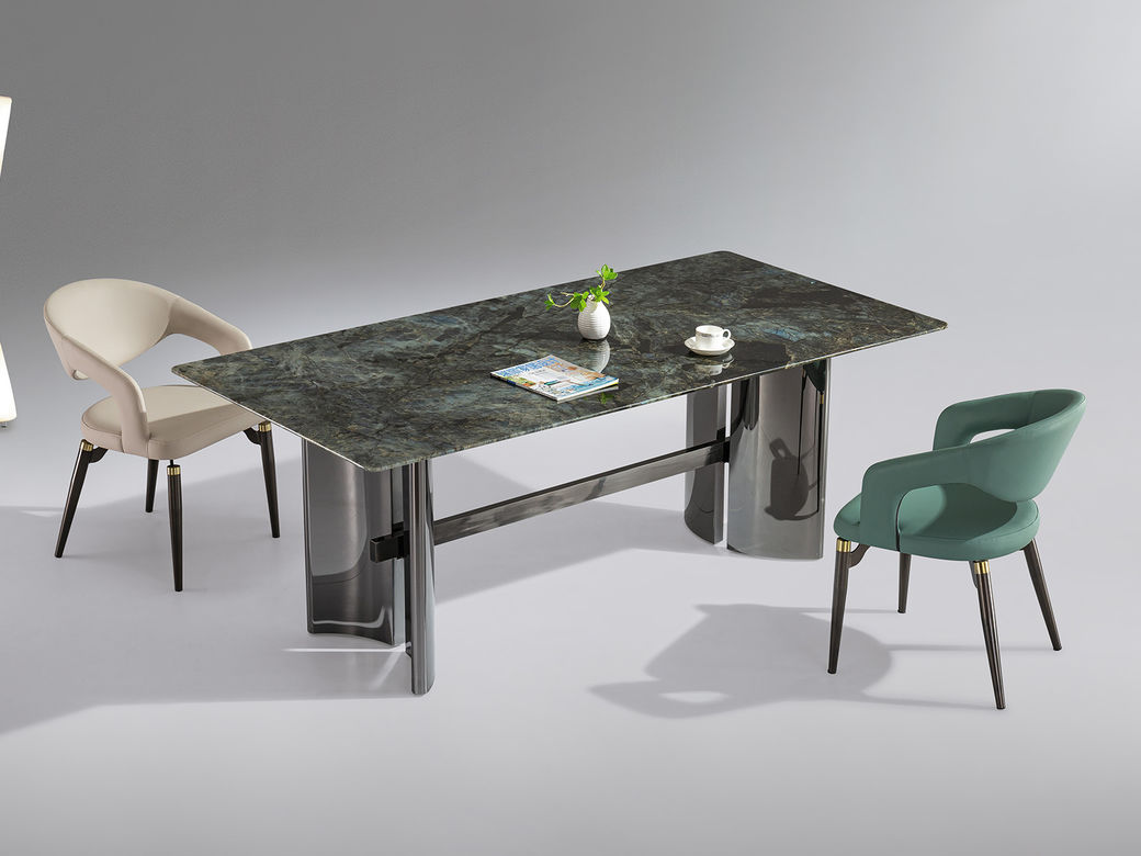 小红书系列 轻奢 桌面:天然石+常规底板脚架:不锈钢镜面 1.4米餐桌¥6498