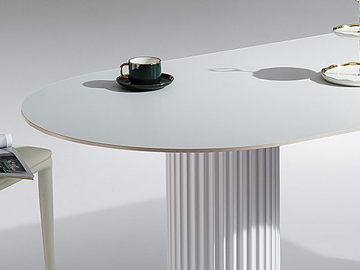 甄品家具 极简 桌面:岩板+底板脚架:亚克力+不锈钢水波纹 1.4米餐桌