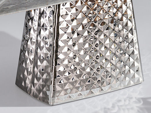 小红书系列 轻奢 桌面:岩板+底板脚架:不锈钢镜面+水波纹 1.4米餐桌