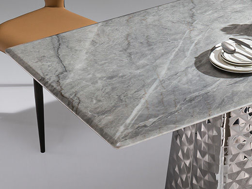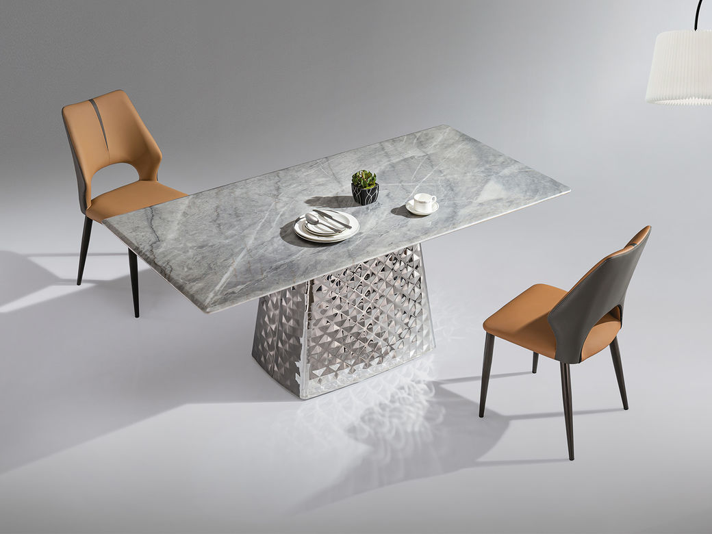 小红书系列 轻奢 桌面:天然石+常规底板脚架:不锈钢镜面 1.4米餐桌¥6498